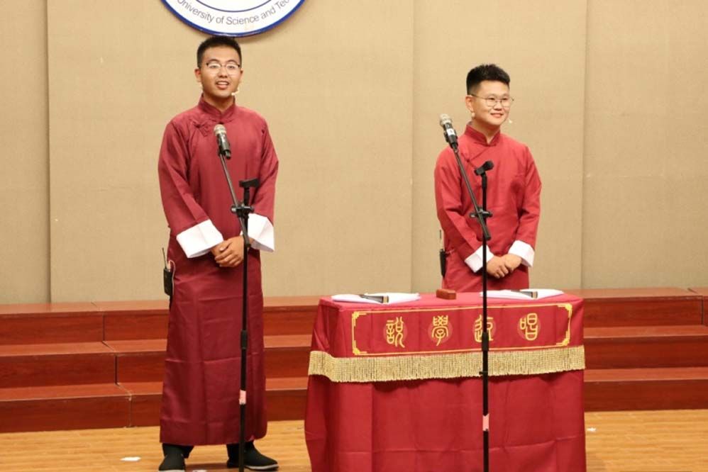 信息工程学院易致成、李世垚带来作品《小穿越》,两位演员侃侃而谈,包袱百出,带大家穿越时空隧道,戏说乾隆故事,话指当代烟火。
