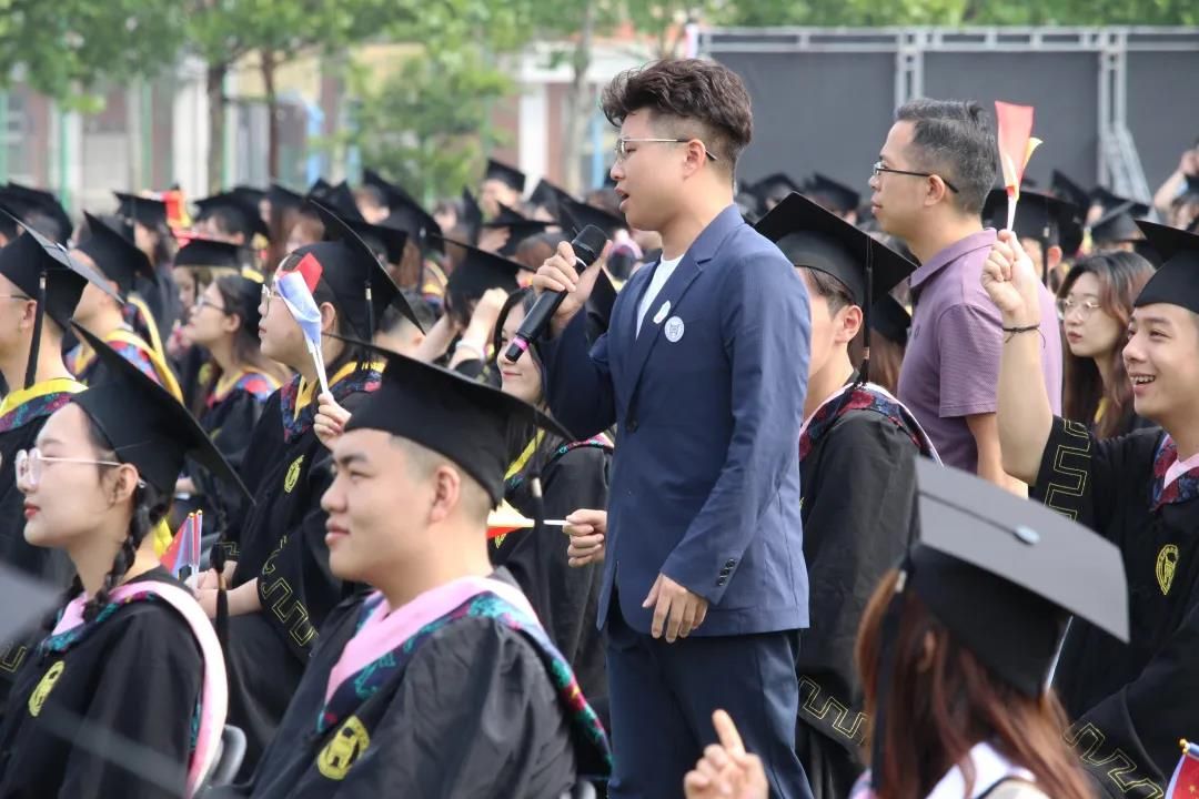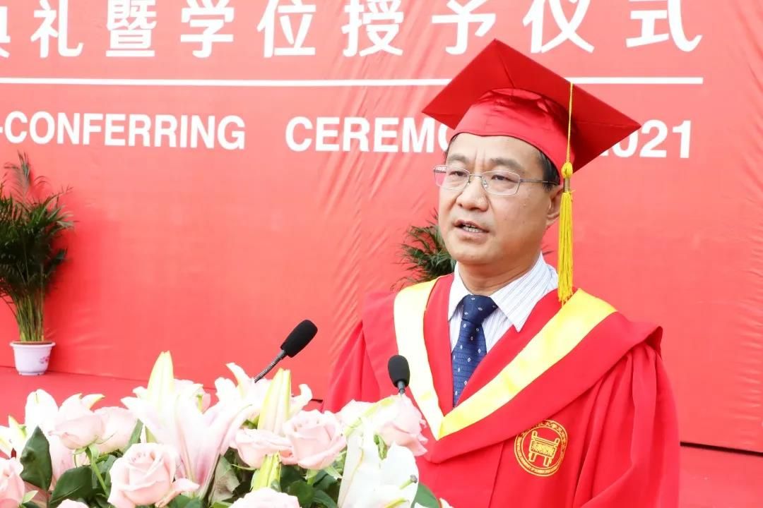 学院院长王斌代表学校,向圆满完成学业的同学们表示最热烈的祝贺,向辛勤付出的父母和老师致以最崇高的敬意!王斌院长对毕业生给予了殷切的希望和深切的祝福,他希望全体毕业生学之以恒、行之以实、守之以德,在学习中不断感悟人生、提升境界,保持积极进取、勇攀高峰的人生态度,牢记习近平总书记对青年的寄语,把正确的道德认知、自觉的道德养成、积极的道德实践紧密结合起来,不断修身立德,打牢道德根基,在人生道路上走得更正、走得更远。
