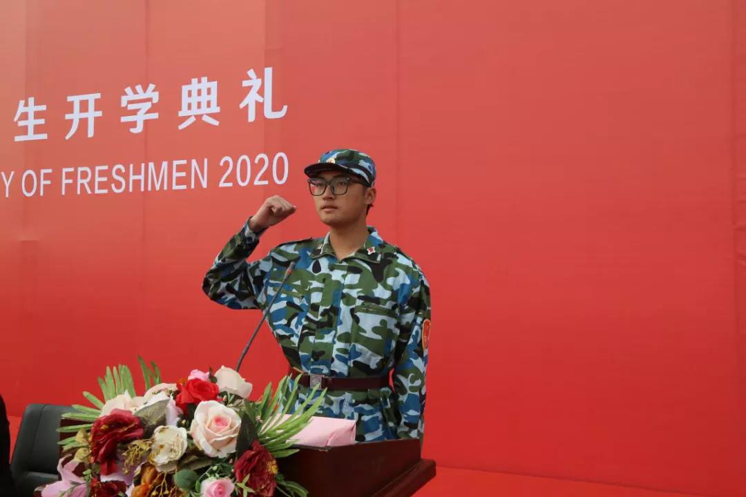 李梓芯同学代表2020级新生发言,她号召全体新同学要时刻牢记习近平总书记对新时代青年嘱托,秉承“明德励学、效实致新”的校训精神,用自己的实际行动来践行使命与担当。