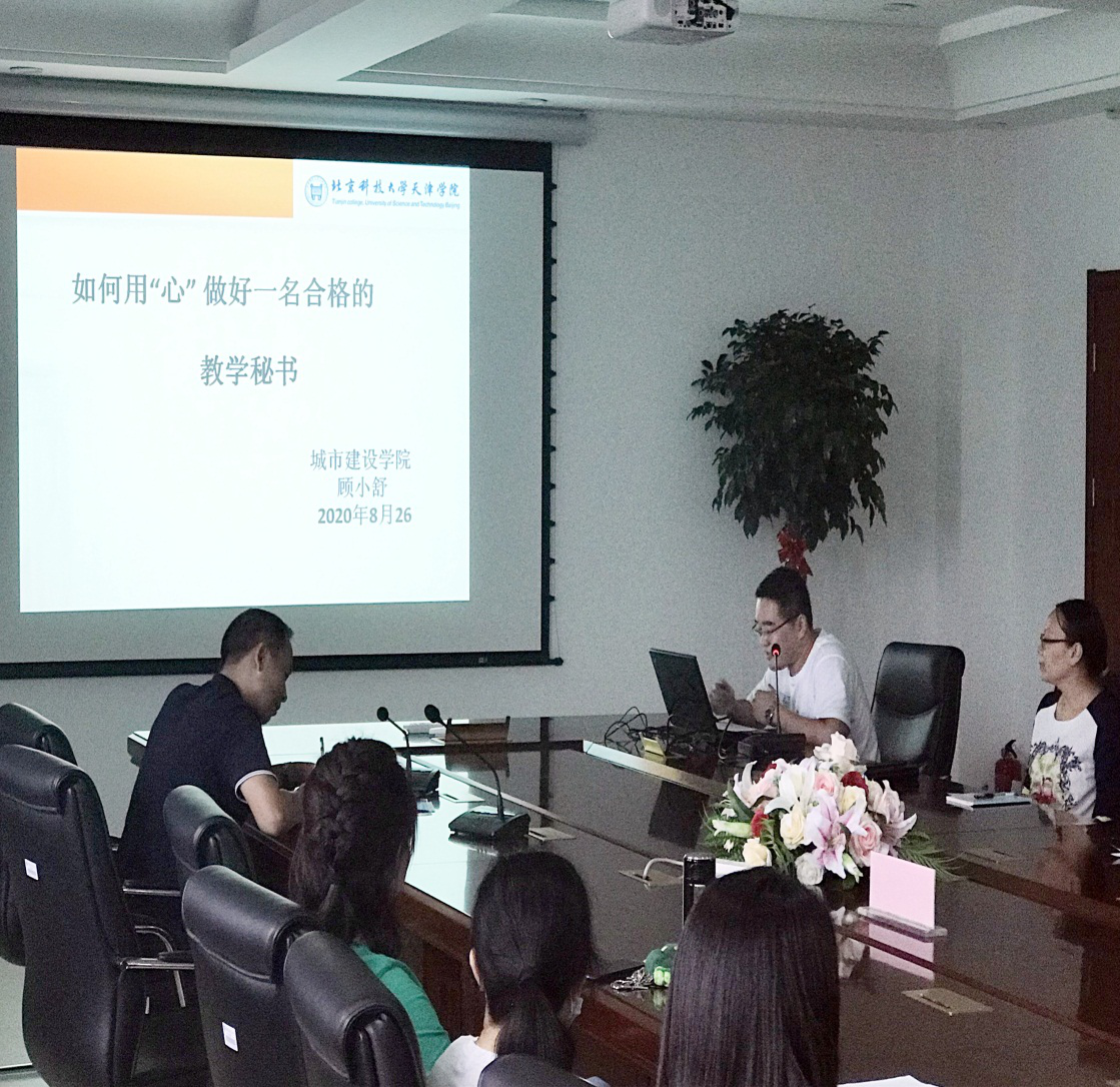随后,副处长杨国梓等教务处相关工作人员结合教学秘书岗位职责,从新专业申报、人才培养方案制修订、教学计划安排、考务学籍、成绩管理、实践教学、教材管理、教务系统等各方面对教学管理工作规范和流程进行了全面具体的介绍,对工作中的关键环节进行了详细说明,并邀请城建学院的顾小舒老师和管理学院的张媛老师,现场讲授他们的心得体会。顾小舒老师以“如何用“心” 做好一名合格的教学秘书”为题讲述了他多年的工作心得。张媛老师则从教学秘书所负责的具体工作出发,分享了她作为教学秘书的工作经验,细化到具体时期的具体事项。参会人员感触颇深。