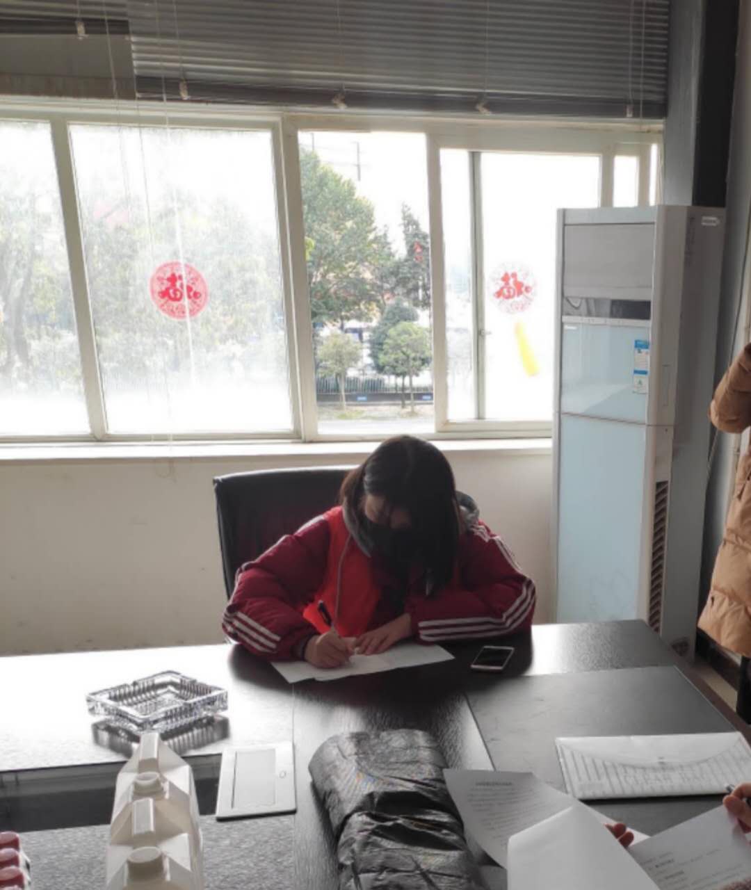物流1701班苏思聘同学,在河北省衡水市桃城区橄榄城小区东团马社区,担任来往人员登记、消毒、疫情宣传工作。