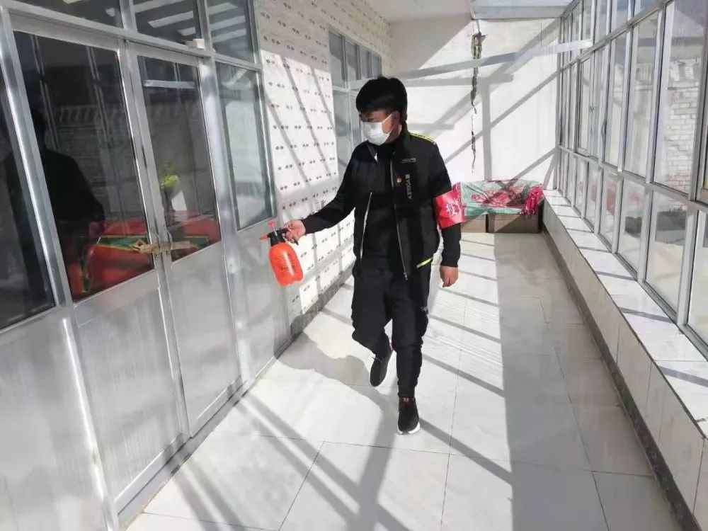 道桥1702班刘伟强同学,在甘肃省天水市麦积区东岔镇龙凤村担任疫情宣传、查访、喷洒消毒工作。