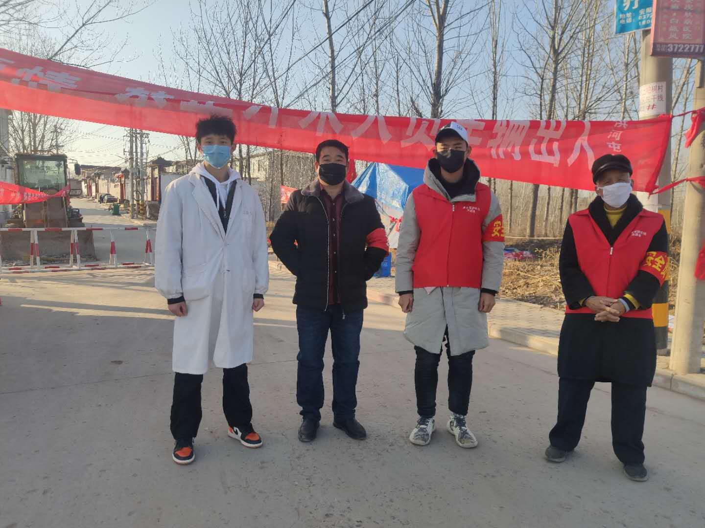 金融1902班张晓洋同学,在河南省安阳县洪河屯乡上柏树村,负责过往车辆登记,非本地车辆劝返工作,特殊时期为村民提供安全保障。