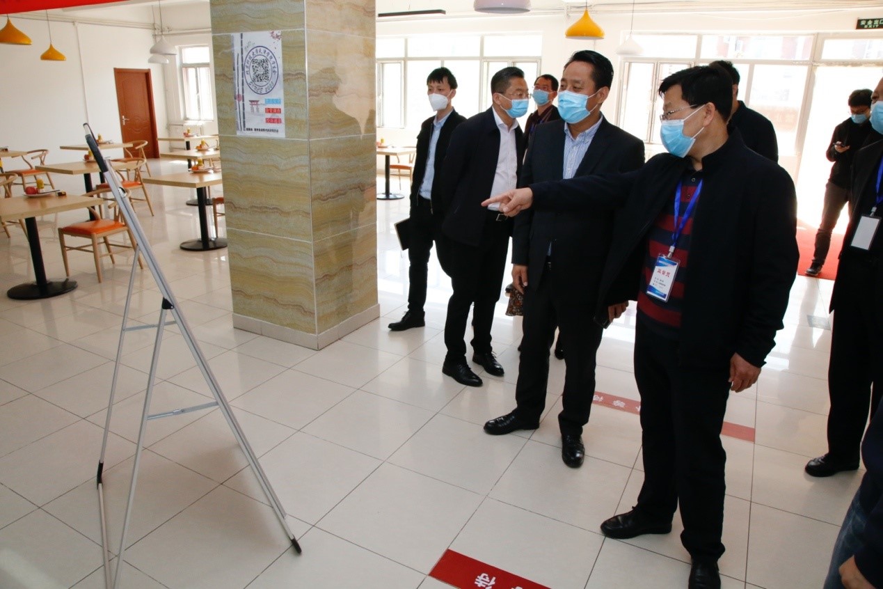 王斌院长向督查组汇报了学院复课开学准备情况,介绍学院在疫情防护、安全保障、校园卫生管理等方面所做工作。督查组前往防控物资储备库房、临时隔离观察点食堂等重点区域实地考察,并对进一步做好复课开学疫情防控工作提出具体要求。
