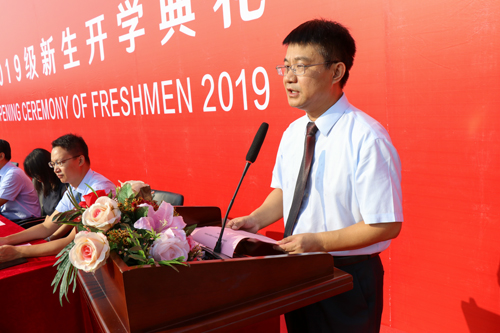 院长王斌在开学典礼上致辞。王院长代表学院全体师生员工向2019级新生表示衷心的祝贺和热烈的欢迎。他寄语同学们要志存高远,不辱使命;积极进取,不忘初心;勤奋学习,不负光阴。希望同学们不负重托、砥砺前行,在梦想中坚守,在拼搏中闪光,在奉献中升华,在天津学院学有所成,去迎接梦想成真的绚烂时刻。