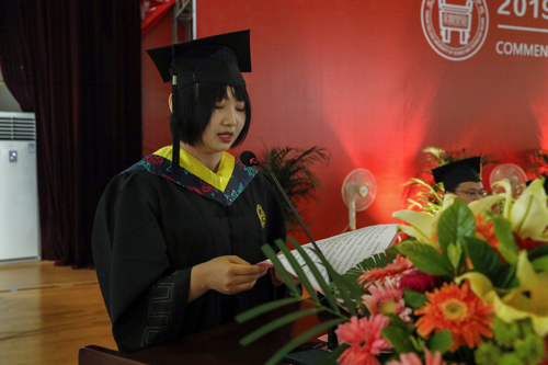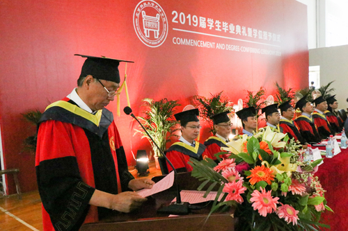 典礼在雄壮的国歌中开始。党委书记丁煦生宣读优秀毕业生名单;学位委员会主席宋存义宣读优秀毕业论文名单;城建学院王宝迪同学代表全体毕业生发言,她向母校、父母和师长致以衷心的感谢,同时也祝福在场的各位同学实现梦想,在未来书写属于自己的精彩篇章;管理学院教师王晓欣作为教师代表发言,她希望同学们在实现中华民族伟大复兴的中国梦的宏伟蓝图中,树立与这个时代同心同向的理想信念,带着知识和激情,将个人的发展与时代的进步融合在一起,不忘初心,昂首奋斗。