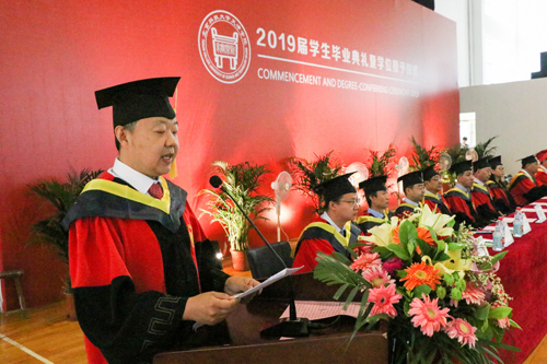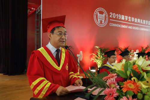 学院院长王斌教授代表学校,向圆满完成学业的同学们表示最热烈的祝贺,向父母和老师致以最崇高的敬意!王斌院长对毕业生给予了殷切的希望和深切的祝福,他希望全体毕业生怀仁爱之心,锤炼品德修为,怀求知之心,夯实知识根基,怀奋斗之心,追逐青春梦想,牢记习近平总书记对新时代中国青年的嘱托,秉承“明德励学、效实致新”的校训精神,怀凌云之志,挥青春之墨,与母校同成长、共辉煌!