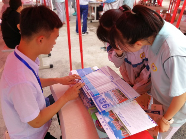 2019年高考志愿填报工作开展在即,为方便广大考生咨询,我校派出多支专业教师队伍在6月23日-26日期间前往甘肃、四川、北京、贵州、内蒙古、江西、江苏、广西、河北、河南10个省市的高考咨询会现场为考生和家长答疑解惑。我校老师就考生和家长关心的专业建设、师资队伍、就业率和考研率情况、校园环境、学费等问题作了详细解答。
