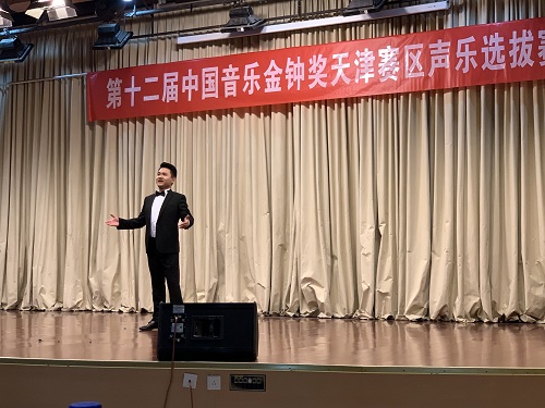 经过数日的激烈角逐,2019年4月17日,第十二届中国音乐金钟奖(天津赛区)选拔赛于天津市和平区文化宫落下帷幕。我院艺术系声乐教师鲍忠孝在该次比赛之中拔得头筹,荣获一等奖,同时取得由天津市音协主席关牧村女士直接推送进入全国决赛的参赛资格。参加本次天津选拔赛的还有来自北京大学歌剧研究院、天津音乐学院、天津歌舞剧院、天津市各文化馆的声乐骨干。