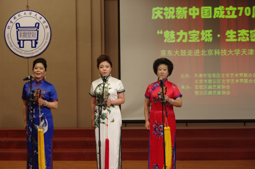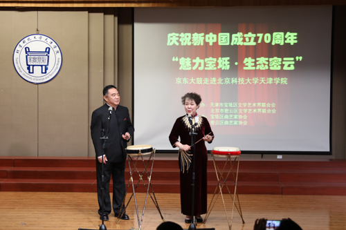京东大鼓诞生于天津宝坻区,地理上习惯称此地为京东地区,故名京东大鼓。京东大鼓是一种雅俗共赏的曲艺形式,以旋律优美、唱词通俗、内容生活化和时代性受到广大人民群众的喜爱。2006年5月,京东大鼓被列入首批国家级非物质文化遗产保护名录。天津学院地处宝坻,有责任为民族文化艺术瑰宝的保护和传承做好相关工作。观看完演出后,同学们纷纷表示,会怀抱着对传统曲艺的热爱,为以京东大鼓为代表的津门曲艺的传承和发展贡献一分心力,成为弘扬传统文化的先行者。