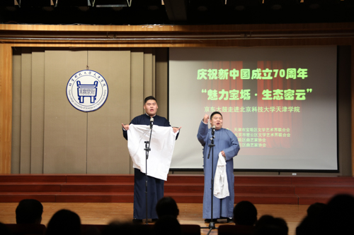 演员们为大家带来京东大鼓、相声、评剧、快板等多种形式的演出,技艺精湛,唱腔深得精髓,声声清脆、曲调高扬,现场高潮迭起,精彩纷呈,博得如潮掌声,充分展示了传统文化进校园的丰硕成果。