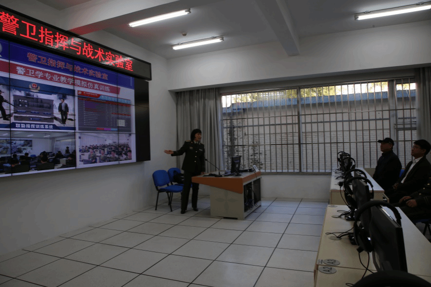 在警卫系主任徐志达等同志的陪同下,参观了中国人民警察大学校史馆,警卫装备技术实验室,警卫指挥与战术实验等,并收看警卫系专业教学仿真训练汇报