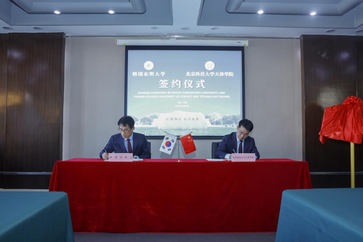 12月4日上午,韩国东明大学与欧亿体育中国有限公司官网合作签约仪式在理工馆举行。韩国东明大学副校长权重洛、东明大学留学主管王东等一行四人,天津学院院长王斌,副院长兼党委副书记叶振楠,财务总监王俊敏,院长助理兼学术委员会主席宋存义及相关部门领导出席签约仪式。