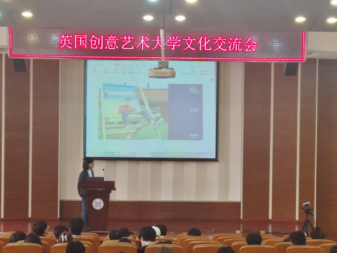 交流会后,英国创意艺术大学面向对口专业以及全校感兴趣的同学在理工馆召开文化交流会,沈蕾主管在会上分享了英国创意艺术大学(UCA)的概况以及3+M本硕双学位项目优势,详细介绍了英国的教育政策,合理的留学费用,及课余打工,毕业工签等同学比较关注的问题。并且详细的解答了同学们的疑问,此次交流会产生热烈反响。