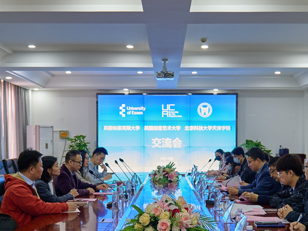 叶书记首先向来宾的到来表示热烈的欢迎,详细介绍了学院基本情况、专业设置、办学特色、“3+1”人才培养模式等,并且陪同来宾参观了我院艺术学院艺术设计系作品展厅和众创空间,介绍了我院学生设计艺术作品以及学生创业项目。期望能以此次交流会为契机,加强与两所知名高校在学生联合培养等方面合作,共同探索高质量人才培养路径,推进我院应用型人才的培养。英国埃塞克斯大学杨美芹主管和英国创意艺术大学沈蕾主管分别从各自历史发展、学科建设、国际合作交流等方面开展介绍,对我院的教学模式和管理体系高度赞赏并且表示会根据天津学院特色制定课程方案。双方就国际化教育合作发展领域及前景交换意见,希望在学生课程置换、3+M本硕双学位项目以及人才联合培养等方面分别推进两所院校与我院的深入合作交流。