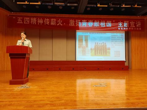 为深入学习贯彻党的二十大精神和习近平总书记关于青年工作的重要思想,以朋辈榜样力量引领全院青年传承五四精神、励志勤思笃学,5月4日下午,智能制造学院分团委举办“五四精神传薪火,激扬青春献祖国”主题宣讲活动。智能制造学院院长陈宝江、学院团委副书记赵慧敏、武装部老师刘武辉、全体辅导员、2021-2022级学生参加,活动由分团委书记李雲啸主持。