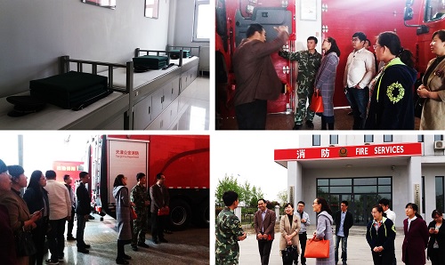 消防中队杨队长带领教师们先后参观了战士们生活、训练和学习活动的场所,战士们宿舍和学习区干净整洁的环境给大家留下深刻印象,还看到了传说中战士叠成的“豆腐块”被子,在训练区内看到各种大型消防车、云梯车等设备,并由战士向大家介绍了消防安全知识。参观的每个地方无不体现着部队纪律严明,敢打硬仗的优良传统,每位教师在参观中都深受教育,为战士们部队的纪律和正直的风气所感染。
