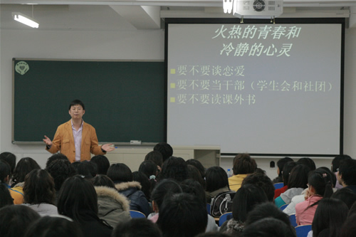 3月18日晚7点半,在8教201室举行了考研英语专场讲座,本次讲座由外语系主办,主讲人为新东方教师戴云,来自我院05、06级的200余名学生参加了讲座。会上,戴老师就同学们较为关注的英语学习问题与同学展开交流,现场气氛十分热烈。