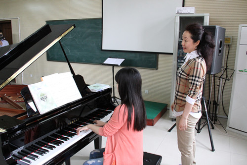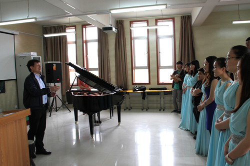 两位歌唱家及王争放总裁在学院领导的陪同下观摩了艺术系学生上课情况,着重考察了声乐课、钢琴课、视唱练耳课、合唱课的教学情况,并与我系师生进行了交流演唱。
