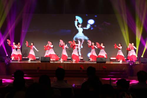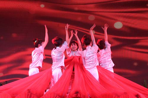 管理学院带来的群舞《红色摇篮》把晚会带入了首个高潮,舞蹈将观众带入红色海洋,感受摇篮情。