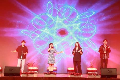 小组唱《大风吹》动感十足,四位演员活力满满带动全场师生哼唱,尽显学子的青春活力。