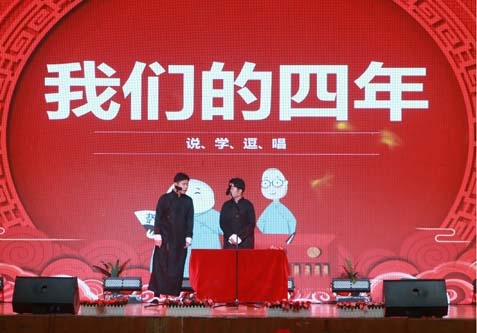 信息工程学院表演的相声《我们的四年》在谈笑风生间讲述了母校的迅速发展,道出了祖国日新月异的变化。