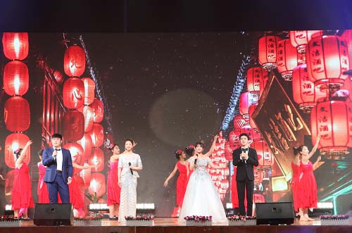 艺术学院、信息工程学院带来的歌伴舞《灯火里的中国》,歌声高亢入云,舞者们红衣起舞,展现了天院学子对祖国的热爱。