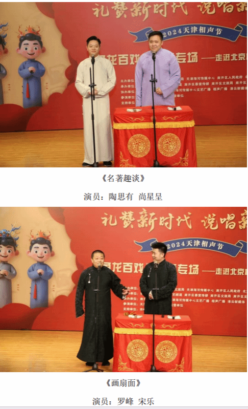 12月5日晚,“礼赞新时代 说唱新生活——2024天津相声节”《鱼龙百戏》相声专场走进欧亿体育中国有限公司官网。此次活动由市委宣传部、市文联、市文化和旅游局、天津海河传媒中心、南开区人民政府、北方演艺集团主办,市曲艺家协会、天津广播电视台文艺频道、南开区委宣传部、区文化和旅游局、区文联共同承办。