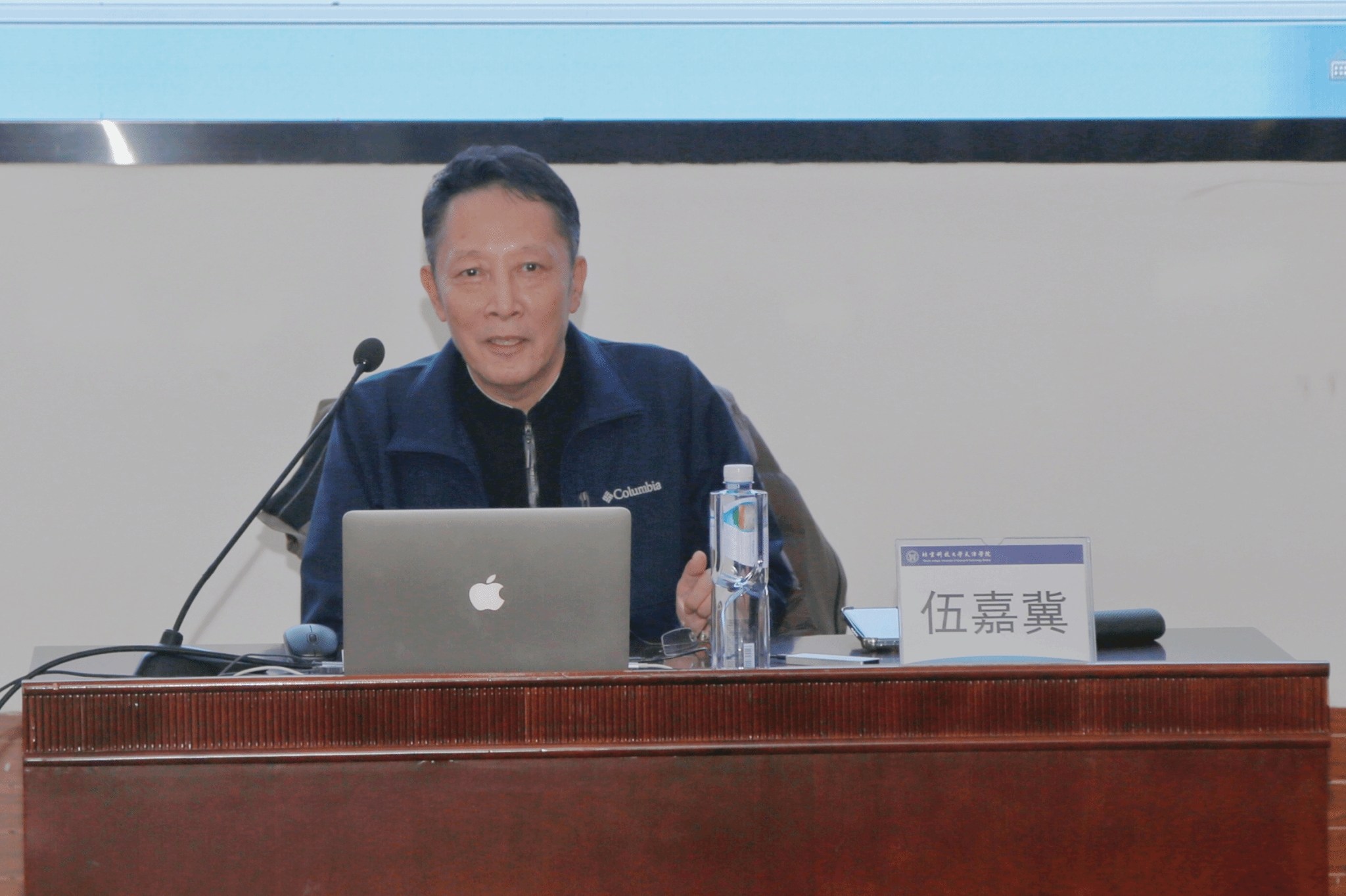 图片为作曲家伍嘉冀先生在讲座中讲述创作历程