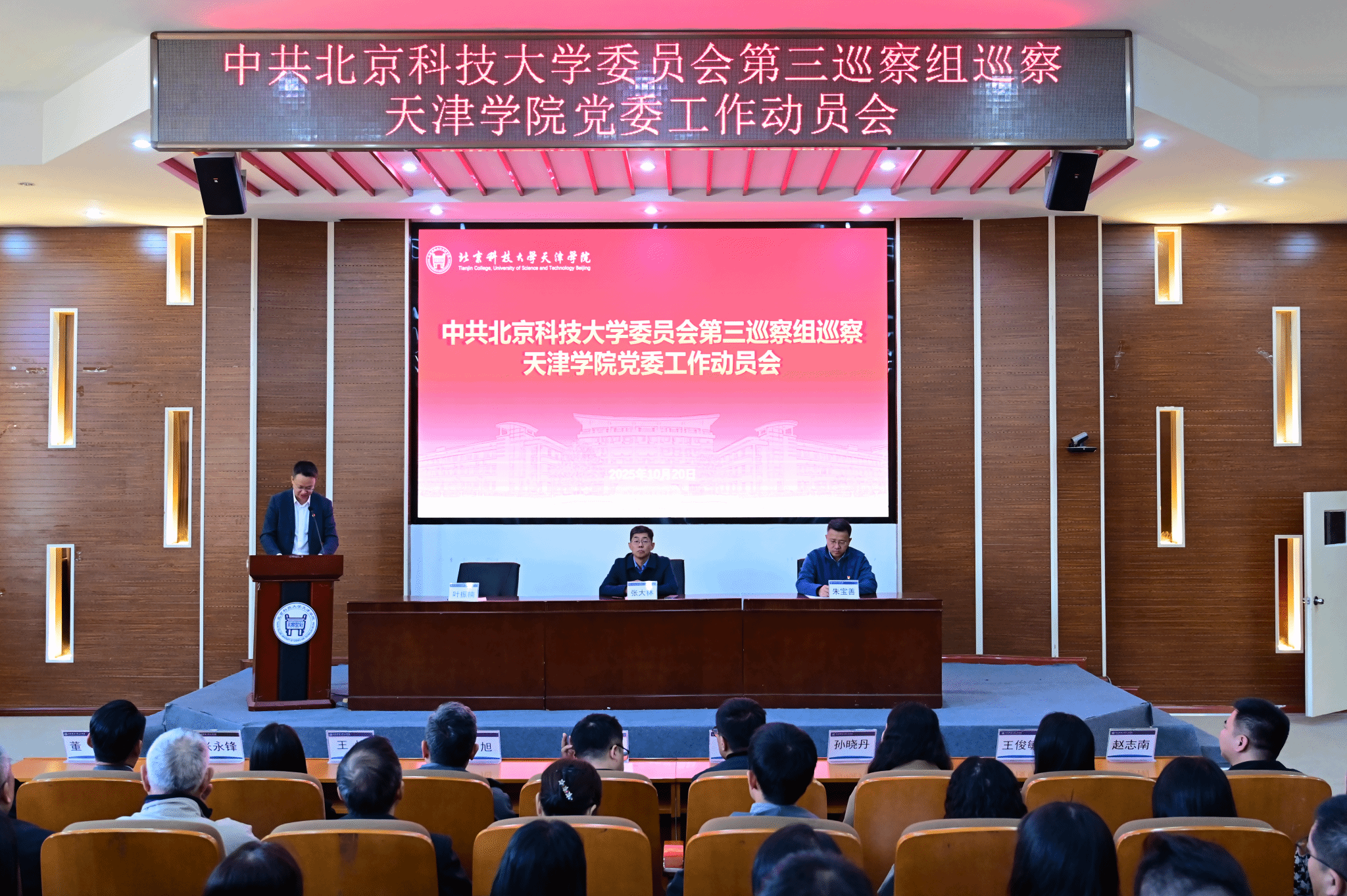 根据巡察工作统一部署,10月20日,中共北京科技大学委员会巡察天津学院党委巡察工作动员会在天津学院理工图书馆学术报告厅顺利召开。校党委副书记、纪委书记张大林,纪委副书记兼纪委办公室主任董春阳,巡察组组长朱宝善以及巡察组人员,巡察工作办公室副主任高晓丹,天津学院领导班子、教职工代表和学生代表等110余人参加动员大会。会议由天津学院党委书记叶振楠主持。