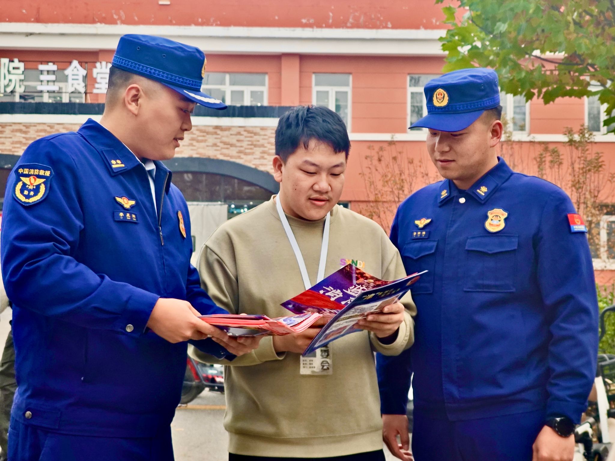 为贯彻落实习近平总书记关于安全生产和消防安全重要指示批示精神,普及安全常识,进一步提升我院师生安全防范意识,2025年11月5日,学院保卫处邀请属地消防、公安机关参与“全民消防 生命至上——安全用火用电”119校园安全文化节线下宣传活动。京津新城消防站站长李晨阳,周良派出所民警丁玉东,保卫处处长周少华、副处长董朋山及全体保卫干部出席了本次活动。本次活动由学生安全工作委员会承办。