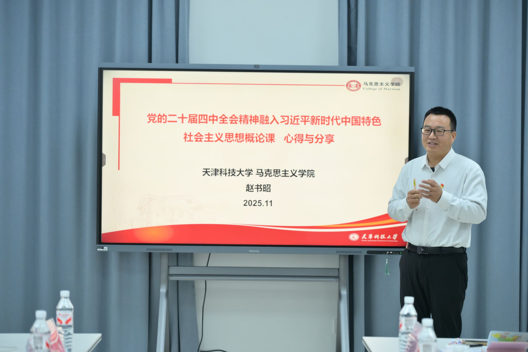 签约仪式结束后,两校共同举行学习贯彻党的二十届四中全会精神集体备课会。我院思政课教师邢钰舒就二十届四中全会精神融入《马克思主义基本原理》课中“矛盾‘共性’与‘个性’的辩证统一”章节做了课程分享,天津科技大学马克思主义学院赵书昭教授作了党的二十届四中全会精神融入《习近平新时代中国特色社会主义思想概论》课心得与分享。