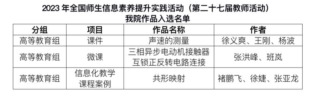近日,教育部教育技术与资源发展中心(中央电化教育馆)发布了《关于总结2023年全国师生信息素养提升实践活动(第二十七届教师活动)参与情况的通知》(教技资〔2024〕3号),我院在本届活动中取得佳绩,报送的3个作...