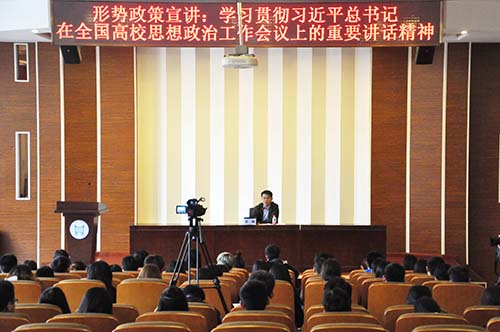3月22日,学院党委书记王斌在理工馆学术报告厅为学生做形势政策宣讲,主题为《学习贯彻习近平总书记在全国高校思想政治工作会议上的重要讲话精神》,学生党支部书记、学生党员及学生干部120余人到场聆听。 王斌书记用...