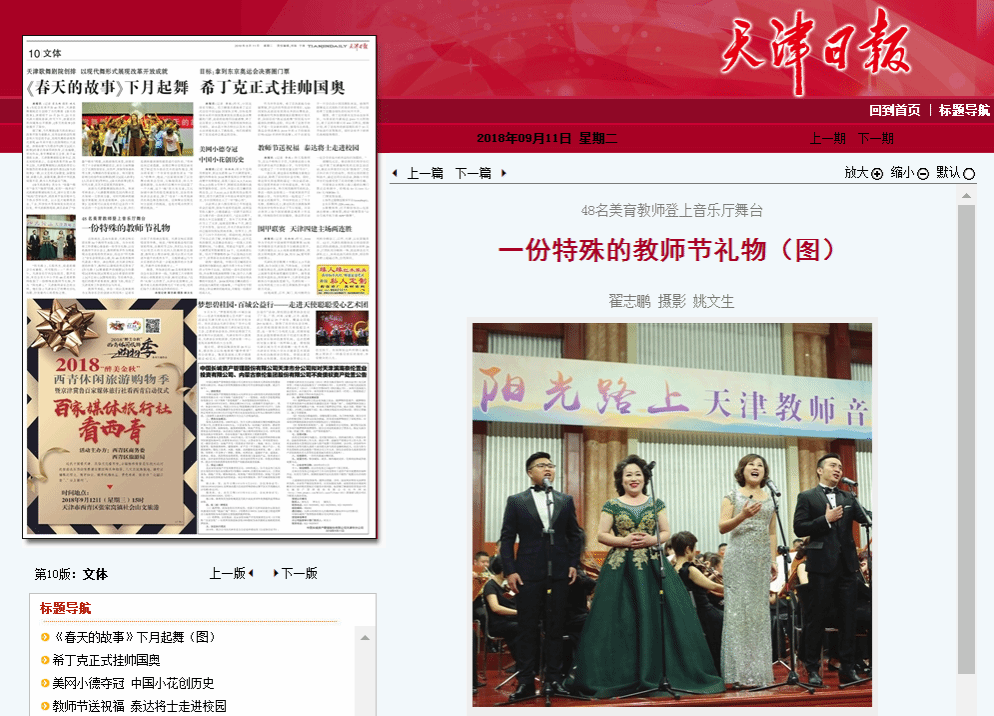 乘着初秋的凉风,循着音符的味道, “阳光路上”天津教师音乐会于9月10日教师节在天津音乐厅隆重举行。我院艺术系青年声乐教师徐小亮由学院选送,通过了市教委组织的遴选,成为48名优秀教师的一员参加此次音乐会,并...