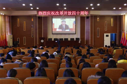 12月18日上午10时,庆祝改革开放四十周年大会在北京人民大会堂隆重举行,中共中央总书记、国家主席、中央军委主席习近平发表重要讲话。学院党委中心组和师生代表集中收看了现场直播。 党委中心组集中收看大会直播 ...
