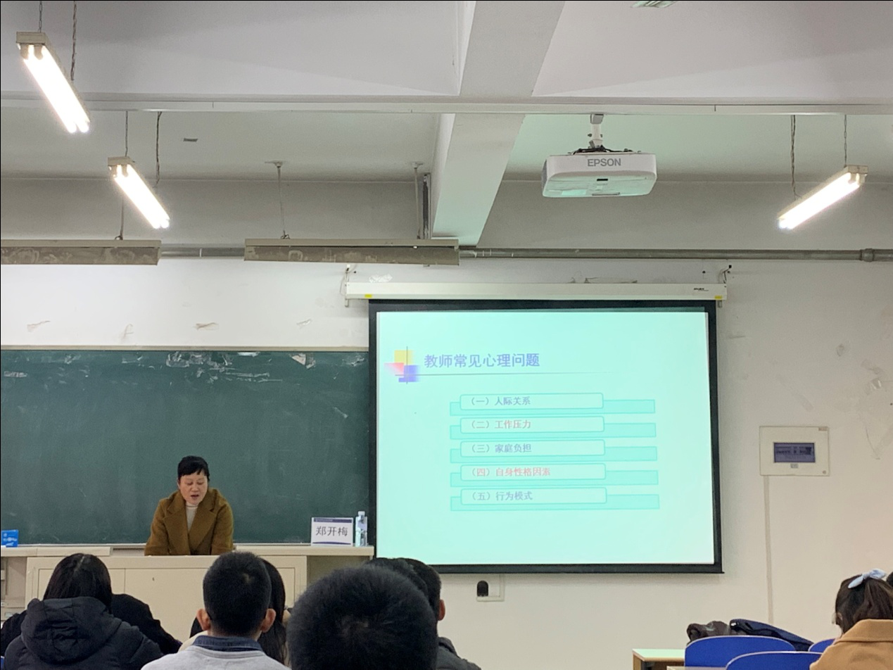 11月13日,新教师入职培训“专家讲座”在8教105顺利举行。此次讲座邀请了郑开梅副教授,现任主治医师、中级心理治疗师、天津市医药专家协会心理学组常委,作题为“心理健康”专题培训讲座。 郑老师主要讲述了心理健...