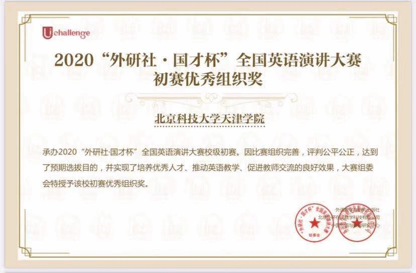 2020年10月起,我院开展2020“外研社•国才杯”全国英语阅读、写作、演讲大赛组织工作,并成功承办校内初赛。被评为天津市第二十三届大学生英语演讲竞赛组织工作“先进单位”荣誉称号和阅读、写作、演讲三项大赛初赛...