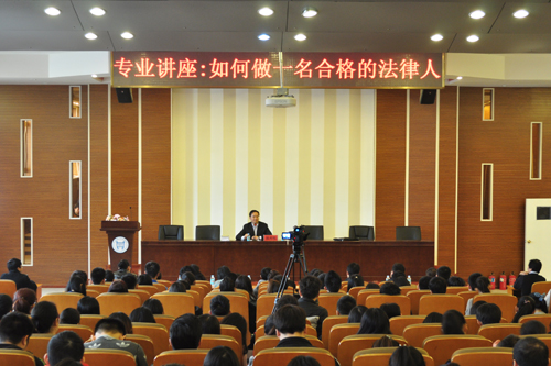 2015年11月15日下午14时,法律专业知识讲座在我院理工图书馆学术报告厅隆重举行。本次讲座邀请到中华人民共和国司法部法制司副司长韩秀桃就有关“如何做一名合格的法律人”为主题做演讲。院党委副书记叶振楠、法律系...