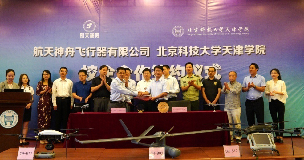航天神舟飞行器有限公司副总经理周明和天津学院党委书记、院长王斌在与会领导的见证下共同签署校企合作协议。