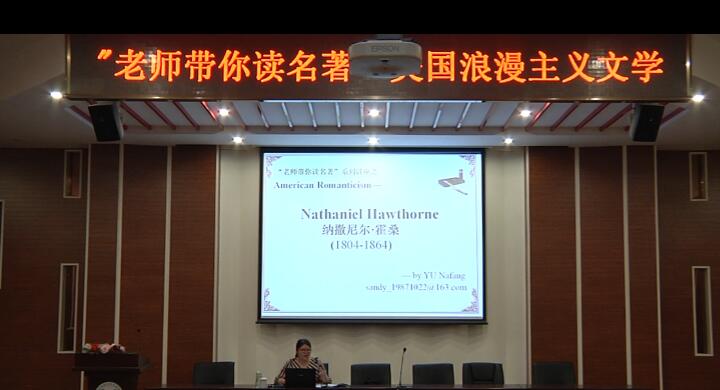 2016年 5月9日(周一)晚19:00,外语系虞娜芳老师在理工图书馆学术报告厅作了关于“老师带你读名著——美国浪漫主义作家纳撒尼尔·霍桑”的讲座,外语系教师、学院学生以及图书馆全体馆员参加了此次讲座。