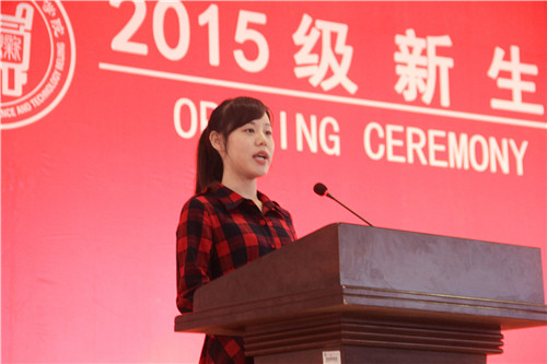 2015级新生代表管理系会计专业李思睿同学代表全体新生发言。