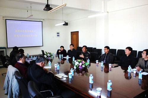郭景文院长向葛院士一行介绍了天津学院近年建设与发展情况和共建实验室的思路。葛院士介绍了粉末冶金、陶瓷材料、磁约束核聚变等方向的学术动态,并就天津学院学科专业建设提出了中肯建设意见。