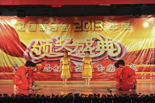 晚会中间,罗富臣、孟祥瑜、潘柏夷和田勇分别为星级社团、最佳人气社团和社团优秀工作者颁奖。