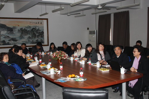 首先,来宾在我馆人员的陪同下,来到理工馆209会议室,进行座谈交流。刘淑娥馆长对兄弟图书馆的到来表示热烈地欢迎,并介绍了我馆近年来的发展建设情况,特别是在文档管理、服务理念、数据库使用、科研课题等方面的经验体会,同时播放了我馆的《工作汇报》视频。