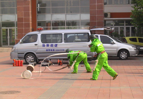 市消防局领导检查我院处突小分队破拆工具的使用情况