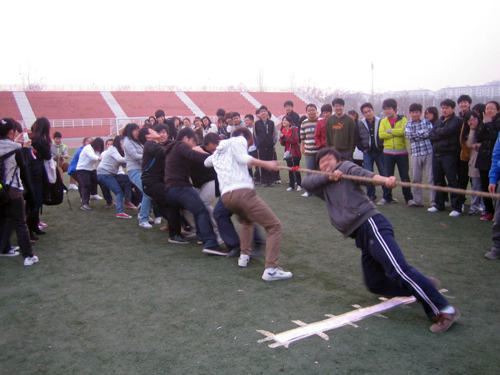 管理系第五届拔河比赛于3月30日在我院西操场开赛。一年一度的拔河比赛以增进同学间交流为宗旨,增强班级凝聚力为目的而举办,经过四届的举办,已经成为管理系的特色品牌活动。本次共有10级管理系的8个班级参加。