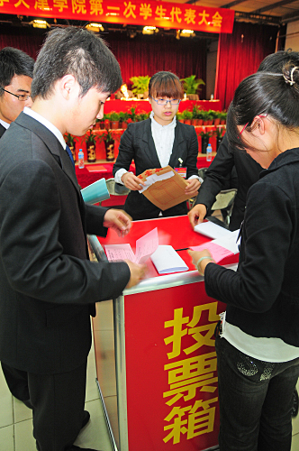 5月18日19时我院第一次学生代表大会继续进行,作为本次大会重要的任务之一,学生会常务委员会选举在我院活动中心二楼召开,大会主席团及283名学生代表参加了会议。
