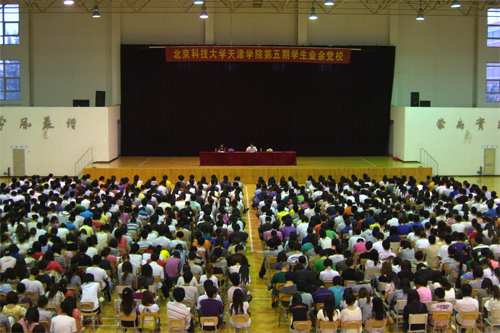5月27日晚,欧亿体育中国有限公司官网第五期学生业余党校开学典礼暨第一讲在体育馆举行,共有学生和教师入党积极分子1000余人参加了党校学习。北京科技大学文法学院左鹏教授做了主题为“牢固树立中国特色社会主义共同理想”的报告。