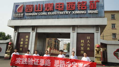 我院经济系09级国贸社会实践考察团于2010年7月20日到达太原市下兰村,召开集体会议,进行细致分工,并与实践地西铭矿相关负责人取得联系,随即开始了为期一周的社会考察。在西铭矿考察期间,实践团成员深入到矿工当中,与在一线工作的矿工交谈,了解了矿厂内工作的特殊性及矿工们生活的状况,之后到达位于长治市壶关煤矿进行实地考察。